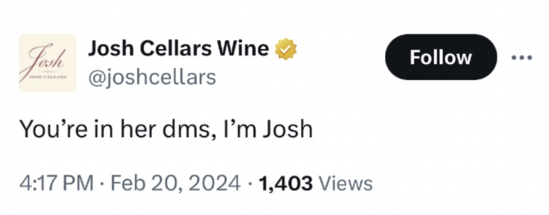 LET's let the josh talkWhen Josh Cellars went viral in 2024, we had to keep that momentum going. Now, We’ve been able to engage a new generation of wine drinkers from the simple fact that our wine is a simple name. Oh, and we won a Gold Effie.