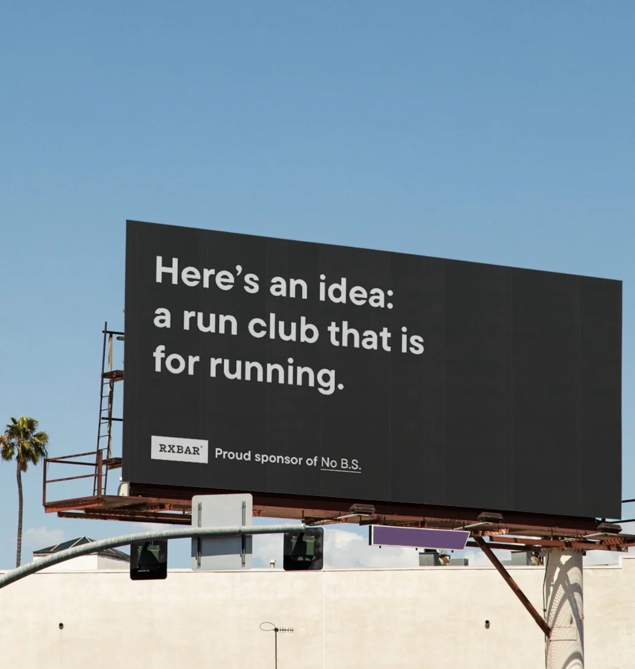 JUST HERE TO RUN CLUBRun clubs have a problem. People aren’t using them to run, they’re using them to date. And RXBAR thinks that’s B.S. So we partnered with Korea Town Run Club and soccer superstar Sydney Leroux to sponsor a “Just Here to Run Club” activation in LA.